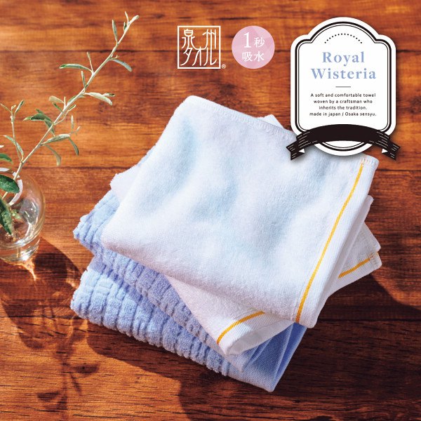 空気を含んだ軽やかでやわらかな日本製タオル。 和泉(いずみ)山脈から流れる豊富な水と共にタオルづくりが行われてきた大阪・泉州。 特別な撚りを施した糸を使用した、毛羽落ちが少なく軽やかでやわらかな心地良いタオルです。
