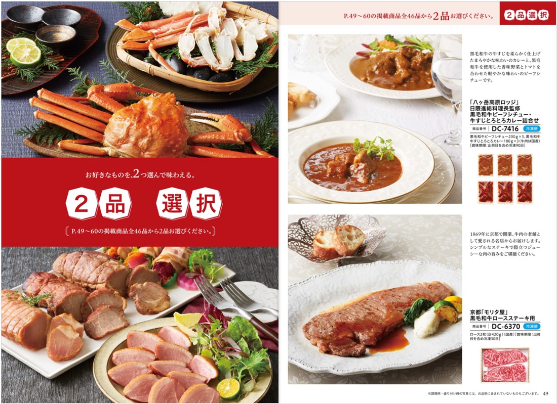 ●ごっつお便券(注文はがき)、カタログ(掲載点数:134点) ※お品物のお申し込み期限は、発行日から1年後の月末日までとなります。 ※カタログ表紙・掲載商品・掲載点数が変更になる場合がございます。