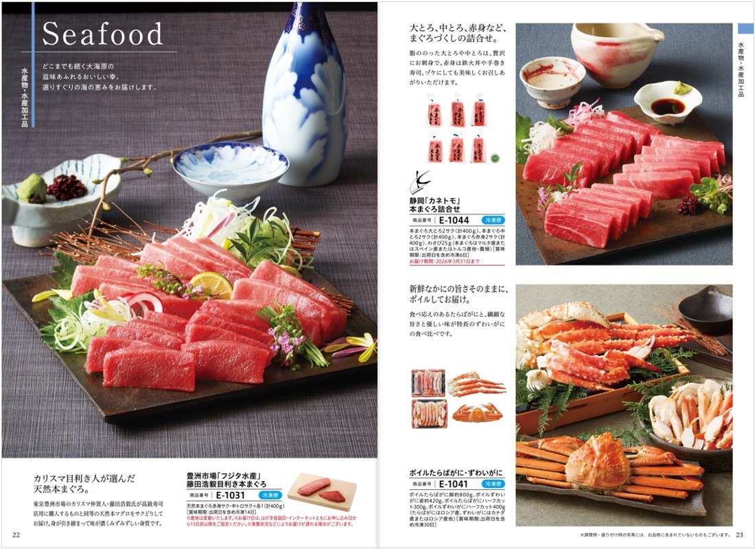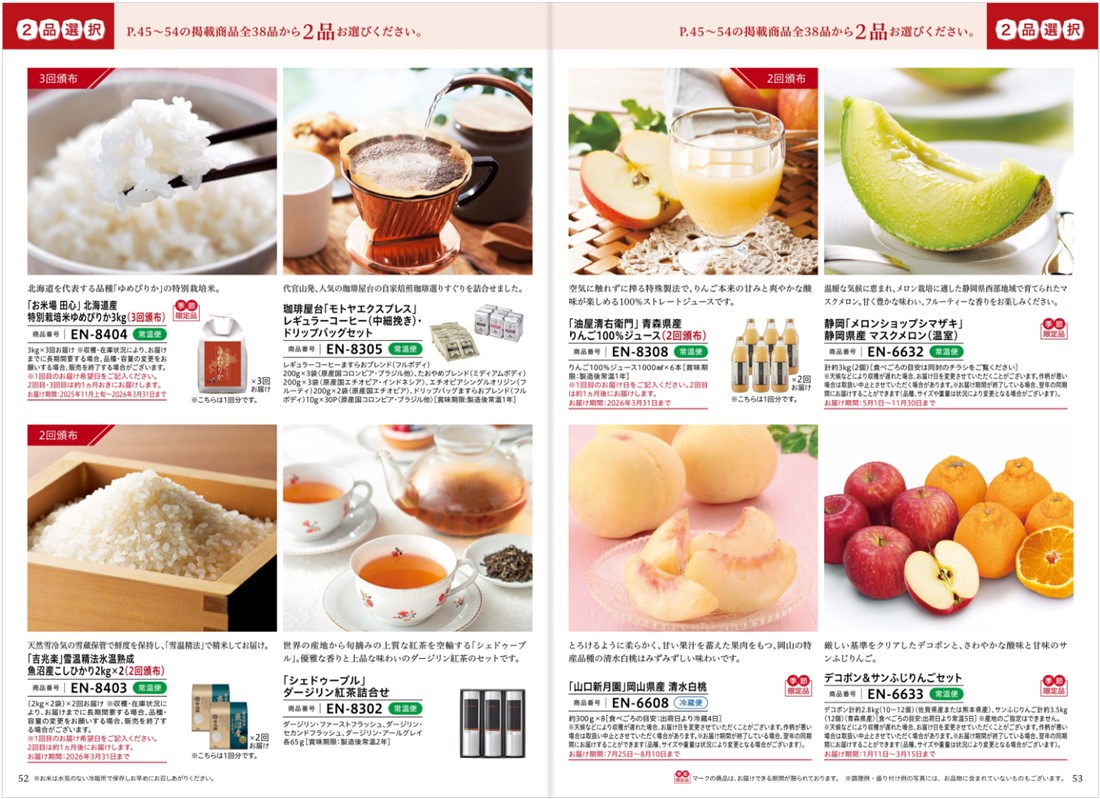 ●ごっつお便券(注文はがき)、カタログ(掲載点数:111点) ※お品物のお申し込み期限は、発行日から1年後の月末日までとなります。 ※カタログ表紙・掲載商品・掲載点数が変更になる場合がございます。