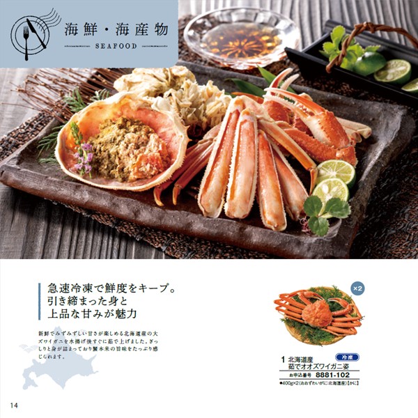 食の大地・北海道の美味を贈る。海の幸はもちろん、地元の方もなかなか食べられない希少な食材など北海道ならではの美味を集めた、グルメカタログギフトです。 食材を通じて自然の恵みを味わえる、北海道の美食をご自宅でお楽しみいただける一冊です。