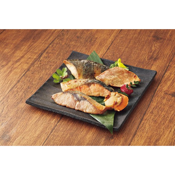 ●焼鮭西京漬・焼ぶり西京漬・焼縞ほっけ西京漬・焼赤魚西京漬各45g×各2、焼帆立貝西京漬25g×1 ●箱サイズ:27×23×4cm ●賞味期限:冷凍で60日 ※アレルギー物質を含む特定原材料8品目について明記しております。 ※賞味期限は製造・加工日を基準に表記しております。お届け時の期限が配送状況等により異なりますので、あらかじめご了承ください。