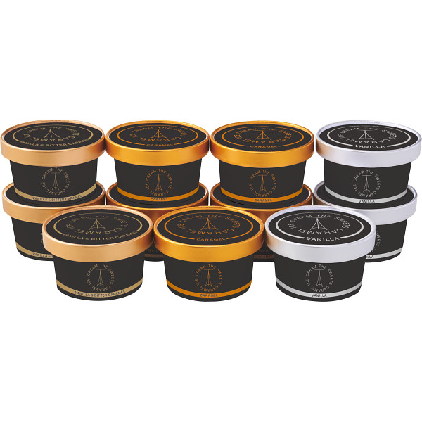 ●キャラメル82ml×5、バニラ・バニラ&ビターキャラメル各82ml×各3(計11個) ●箱サイズ:30×21×18.5cm ※アレルギー物質を含む特定原材料8品目について明記しております。 ※賞味期限が表記されていない商品の賞味期限は91日以上です。 ※賞味期限は製造・加工日を基準に表記しております。お届け時の期限が配送状況等により異なりますので、あらかじめご了承ください。
