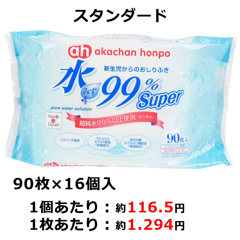 ●”水”にこだわり、超純水※1を99%以上使用しています。 ※1 水の精製技術を駆使して不純物を取り除いた、純度100%の理論上のH2Oに近い水のこと。 ●防腐剤を必要最小限に抑えた赤ちゃんのおしりふきです。 ●パラベン、プロピレングリコール(PG)は配合していません。 ●お肌を健やかに保つ加水分解ヒアルロン酸(保湿成分)を配合しています。 ●お肌にやさしい弱酸性です。 ●皮ふ刺激性テスト済み(すべての人に皮ふ刺激を起こさないというわけではありません。) ※トイレに流さないでください。