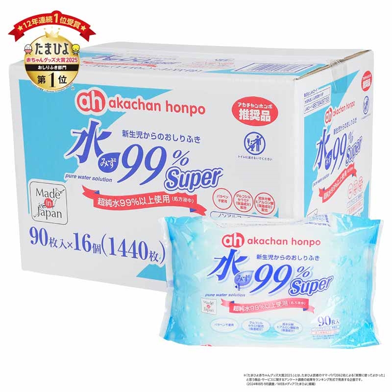 水99%Superトイレに流せるおしりふき90枚×12個(ケース)はこちら