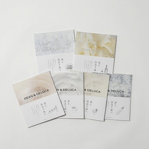 「おいしい朝食から始まる旅」「世界のごちそうを味わう旅」「和食の魅力を再発見する旅」「道具を通じて食を知る旅」「心ときめくお菓子に出会う旅」5つのテーマにそって旅するように商品をお選びいただけます。 こだわりの食材やパッケージも魅力的なスイーツ、料理を楽しくするキッチン雑貨など洗練されたアイテムがいっぱい。 食のセレクトショップ「DEAN & DELUCA」の魅力をそのままカタログに表現しました。 ※手付袋はお付けできません。