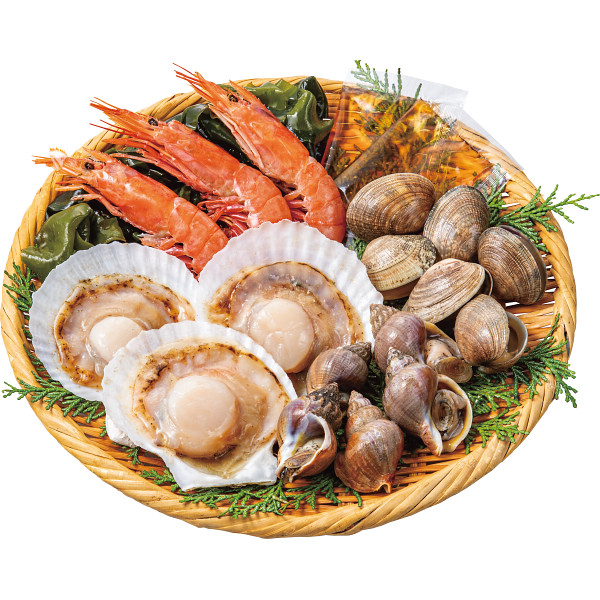 ●片貝ほたて(ほたて:北海道産)×3、アカエビ(エビ:アルゼンチン産)×3、貝あさり(あさり:北海道産)×6、つぶ貝(つぶ貝:北海道産)×5、わかめ(国産)100g、塩たれ20g×3 ●箱サイズ:32.5×29×8.5cm ●冷凍 ※アレルギー物質を含む特定原材料8品目について明記しております。 ※賞味期限は製造・加工日を基準に表記しております。お届け時の期限が配送状況等により異なりますので、あらかじめご了承ください。 ※賞味期限が表記されていない商品の賞味期限は91日以上です。