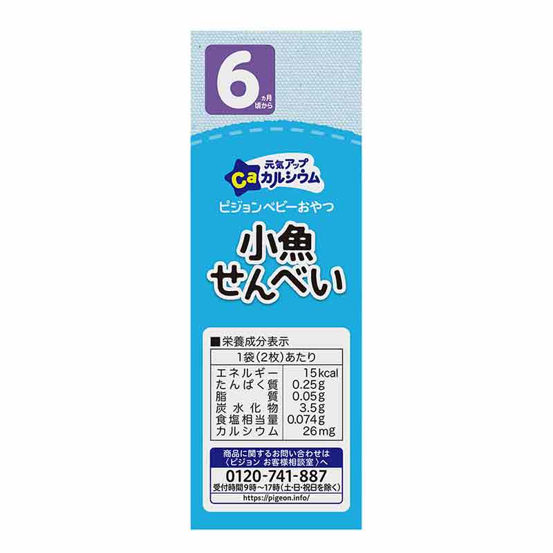 おいしく、楽しく、発育に必要な栄養を補える、ベビーおやつです。 赤ちゃんの手のひらや指先にあわせたサイズ。 手づかみ食べや小さなものを指先でつまむ練習にもぴったりです。 カルシウム28mg/袋。 着色料・保存料・香料は使用していません。