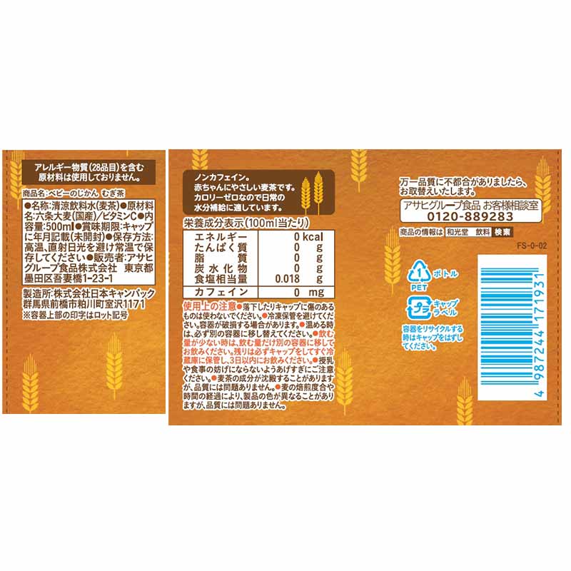 ●内容量:500ml ●原材料名:六条大麦、ビタミンC