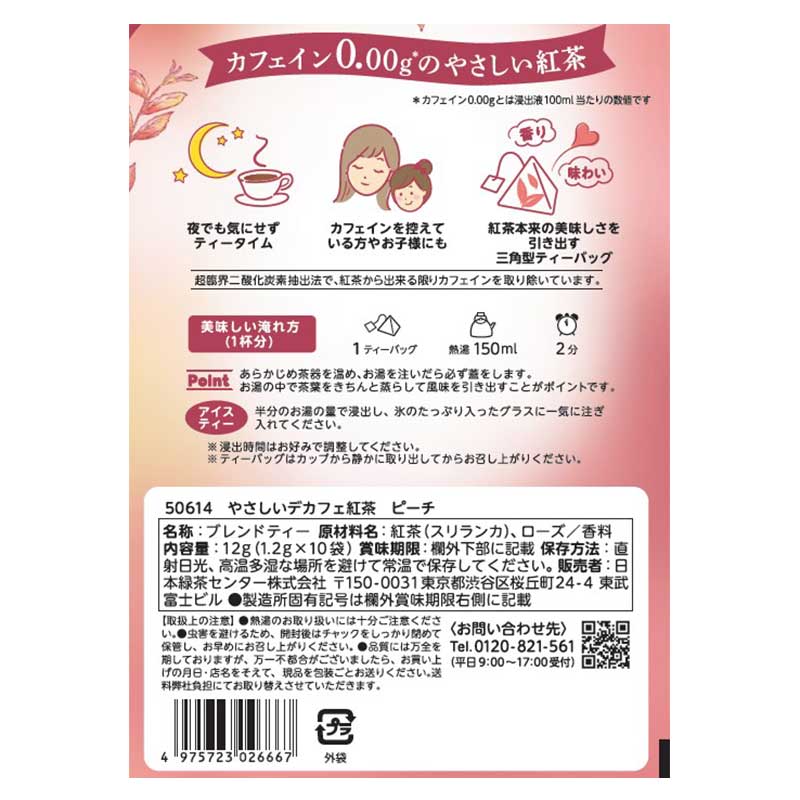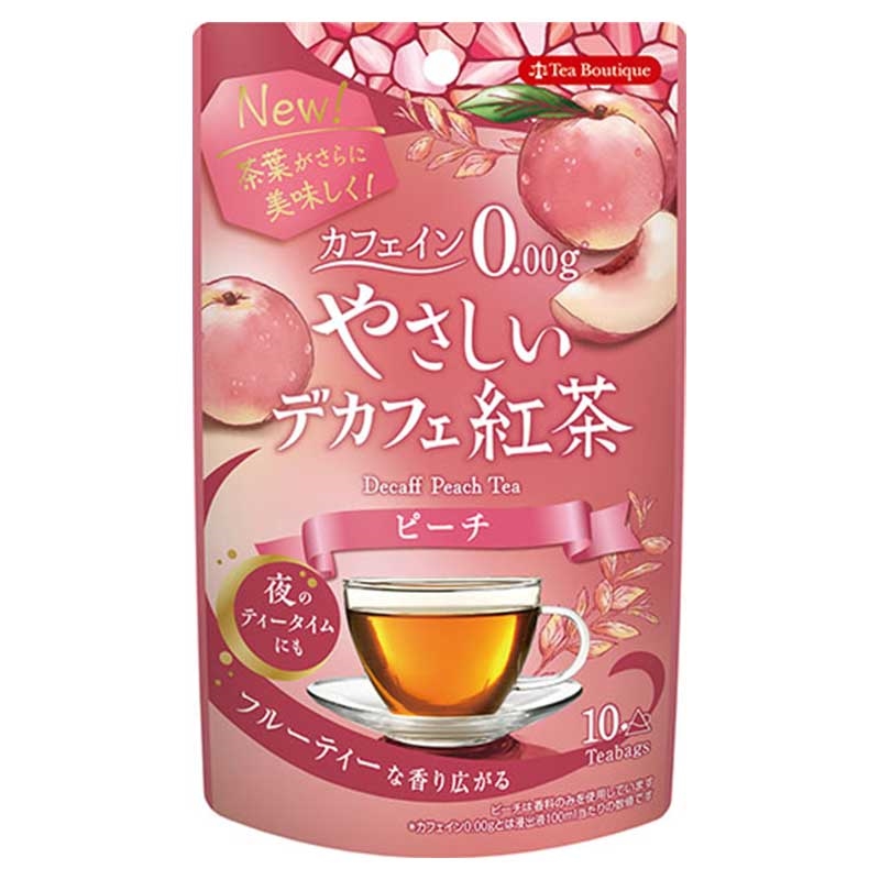 カフェインが苦手な方にうれしいデカフェ紅茶。 お休み前のリラックスタイムにもおすすめのやさしい味わいです。 芳醇なピーチの香りがふんわり漂うフレーバーティー。 ※パッケージデザインが、画像と異なる場合がございます。