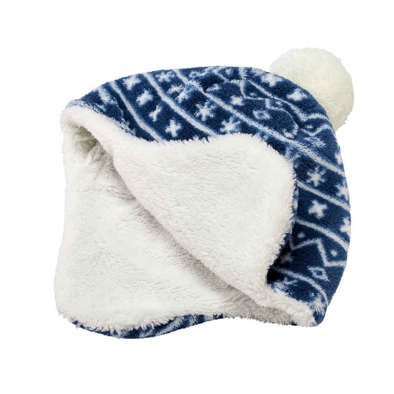 ノルディック柄の可愛いフードです。 ふわふわの毛並みがとっても気持ちいいですよ。 同じシリーズで揃えてどうぞ。 ・あたたかみのあるフリース素材を使用。 ・お顔の編みモチーフがポイント。 ・頭上にぼん天付き。